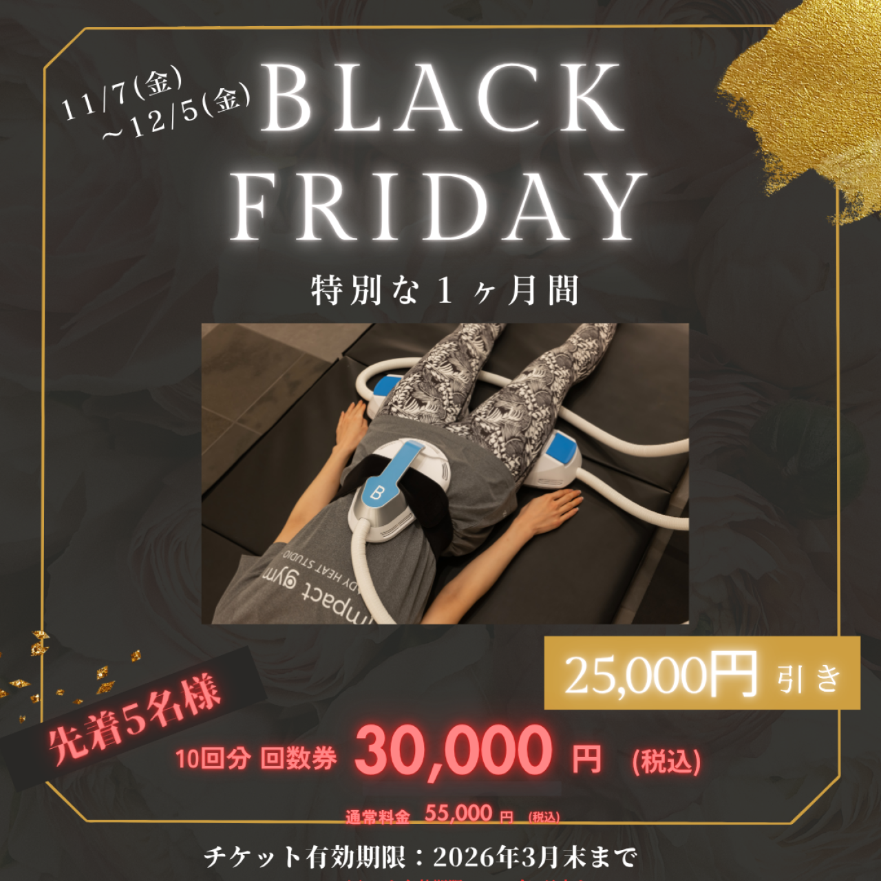 少し早めのブラックフライデーで、あなたのカラダを「お得に」アップデートしませんか?皆さまのご来店を心よりお待ちしております😊